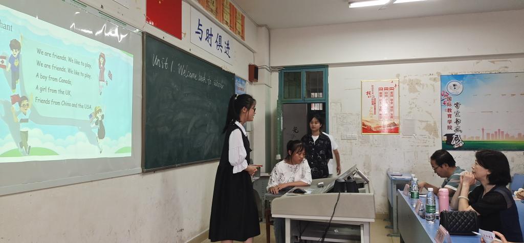 本站讯(国际教育学院李强学生记者陈美雪)为进一步促进英语教育专业学生师范生基本技能的掌握和创新,并营造良好的职业技能竞赛氛围,国际教育学院于5月27日下午2:00在第一教学楼西605与西602教室开展了师范生综合技能大赛。国际教育学院专业英语教研室李强、严昳芳,罗小玲、刘国平、周宏、易菲、李雅琴、邓述文八位老师担任评委,共有28组同学参加比赛。