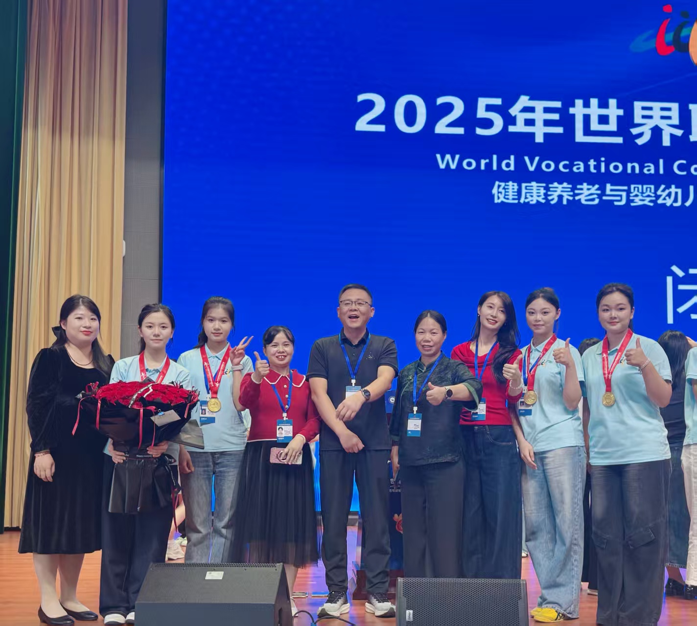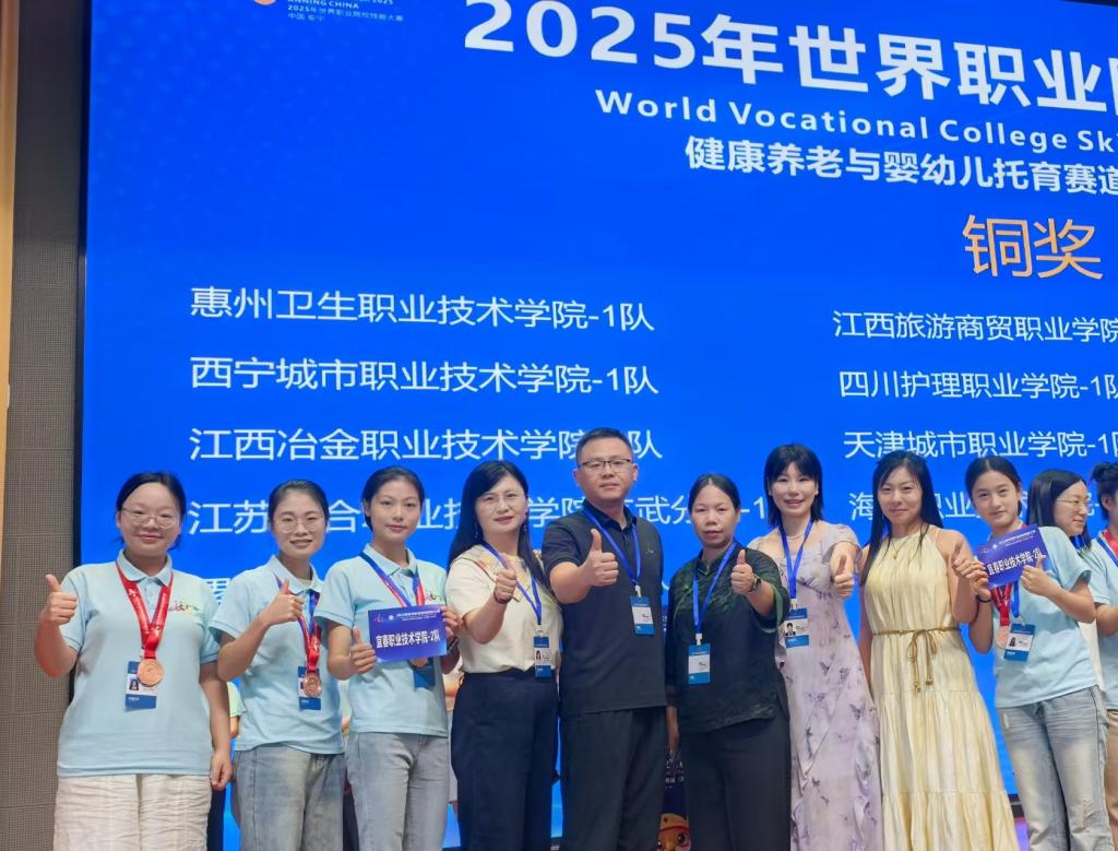 本站讯(护理学院王童语)9月2日,2025年世界职业院校技能大赛总决赛争夺赛“健康养老照护与婴幼儿托育赛道”高职组比赛在云南交通运输职业学院顺利落幕。本次大赛共吸引来自全国155支代表队、601名选手同台竞技。由我校护理学院指导教师汤薇、吴小华、钟旻昱,学生何娜霞、舒思、张婷、刘学琴组成的参赛队伍,凭借出色的技能和默契的团队合作,最终在众多参赛队伍中脱颖而出,荣获金奖!实现了江西省在该赛事金奖零突破。由指导教师杨红、秦忠萍、刘磊,学生李燕妮、张佳瑶、卢泳卉、何杉杉组成的参赛团队获得铜奖,为江西省和学校赢得了荣誉。