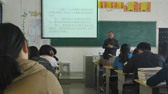 本站讯(思政部 张正芳)2015年4月14日下午3:00,思政部全体教师在第三教学大楼603教室听取了张周钟老师的一堂教学观摩课,内容为《毛泽东思想和中国特色社会主义理论体系概论》课程中的“建设中国特色社会主义的总依据”。