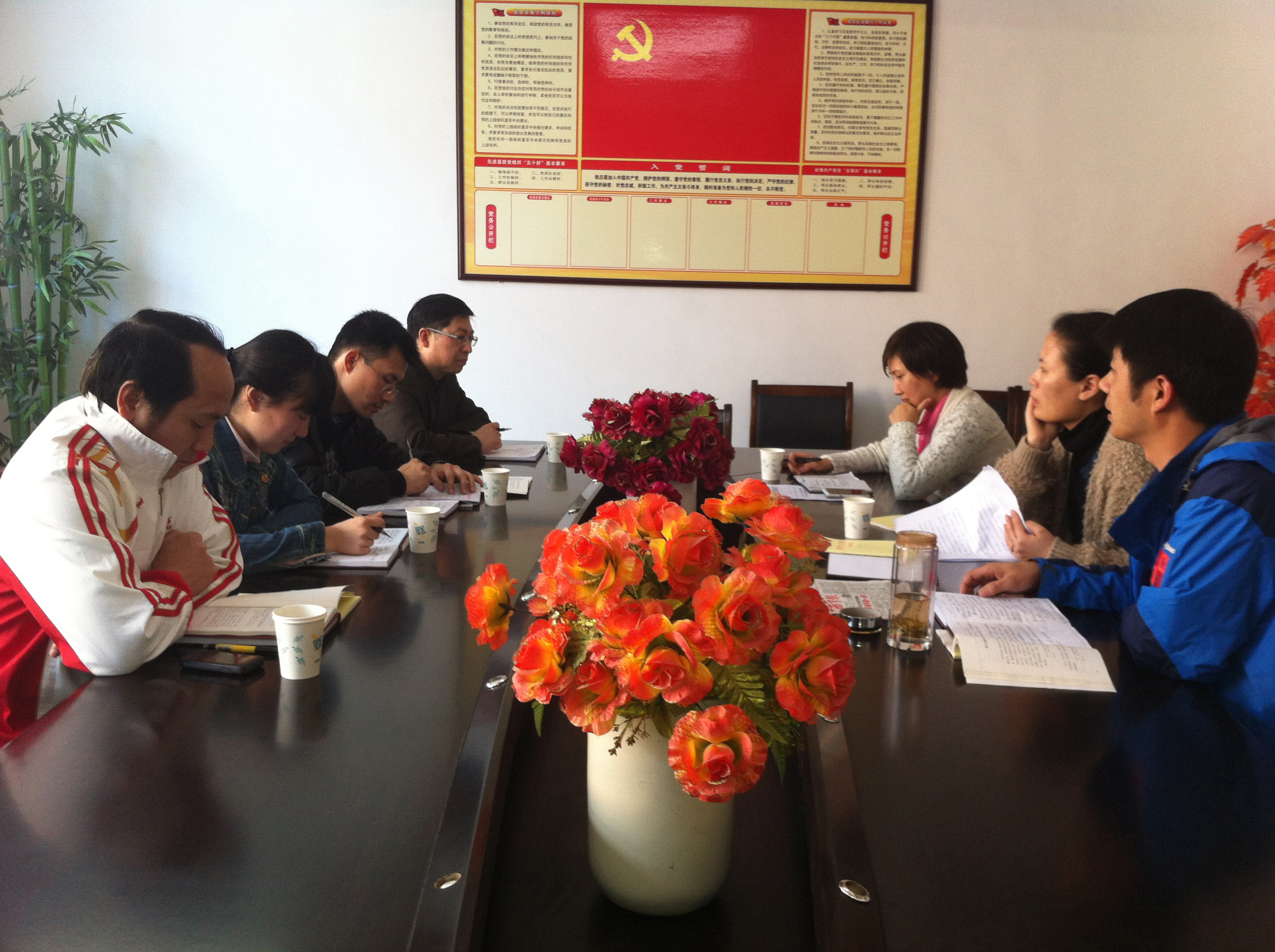 首先,思政部副主任钱爱文带领大家一起认真学习了3月17-18日习近平总书记在河南省兰考县调研指导党的群众路线教育实践活动时的重要讲话精神。